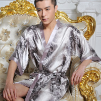 睡袍男夏季短袖丝绸薄款睡衣连体春秋冬中长仿真丝浴袍冰丝家居服