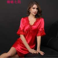 锦铭七玥跨境美女袍中袖仿真丝大码睡衣女士夏季丝绸单睡袍居服