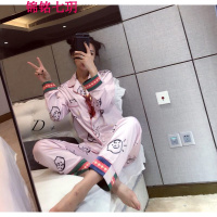 锦铭七玥春季新款甜美开衫印花图案长袖长裤仿真丝丝绸居服女士睡衣