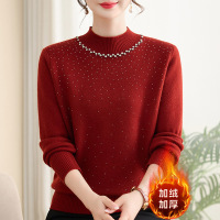 妈妈冬装加绒加厚红色毛衣新年装过年衣服中老年人女本命年打底衫