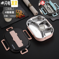 三维工匠日式不锈钢保温饭盒便当学生便携餐盒套装分隔型上班族餐盘分格小 北欧粉2.5(四分格)+筷子勺子