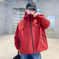 男童春季外套2026新款大童春秋款红色痞帅男孩春装连帽儿童冲锋衣