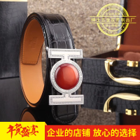 威镰史蒂芬男士真鳄鱼肚皮龍系列红猫眼石皮带镶钻平滑扣头裤腰带