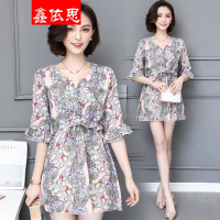 鑫依思 2018夏季新款大码中长款遮肚子碎花防晒短袖雪纺衫喇叭袖上衣G368