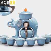 三维工匠全自动茶具套装家用陶瓷简约创意懒人茶具功夫泡茶器整套 4哥窑蓝-包罗万象吸磁自动茶具