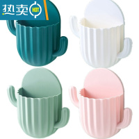 敬平创意梳子收纳筒卫生间免打孔壁挂化妆刷牙刷牙膏收纳盒浴室置物架 象牙白+樱花粉[2个装]