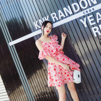 早秋新款甜美喇叭袖碎花雪纺衫女蕾丝小吊带两件套上衣显瘦