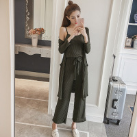 珂依舍2017秋装新款秋装胖妹妹吊带针织开衫小香风韩版时尚宽松长裤大码三件套潮