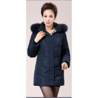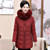 新款冬装中老年女装连帽羽绒服毛领修身中长款加厚大码外套妈妈装