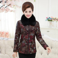 皮草中老年皮羽绒服女真皮大码短款印花皮衣妈妈装狐狸毛领
