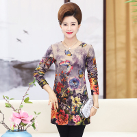 中年女装夏装上衣2017新款T恤女40-50岁中老年长袖妈妈装秋装衬衫