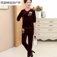 中年女装长袖上衣裤子妈妈装秋装绣花运动套装中老年金丝绒两件套