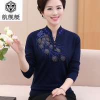 妈妈装春秋长袖针织打底衫中年妇女秋装上衣中老年半开领套头毛衣