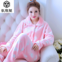 睡衣女家居服套装加厚法兰绒秋冬季长袖珊瑚绒妈妈装可爱韩版开衫