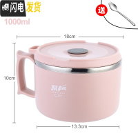三维工匠304不锈钢保温饭盒圆形1人便当餐盒上班族便携饭缸小学生防烫带盖 北欧粉(1000)+304叉勺+袋子