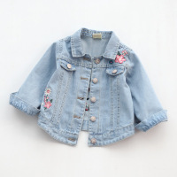 女童刺绣花浅色牛仔外套宝宝翻领牛仔衣上衣2018春新童装