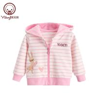 女童卡通连帽外套 婴儿春秋季 儿童条纹上衣 宝宝拉链衫