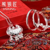 熊银匠宝宝银饰长命锁S999纯银平安锁足银婴儿银锁小孩儿童锁满月