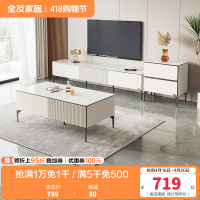 欧梵森 北欧轻奢岩板茶几电视柜组合推拉伸缩大理石岩板电视柜小户型客厅家具意式风岩板现代简约套装家用储物柜