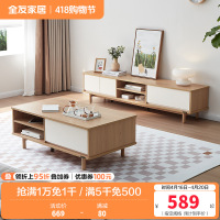 全友家居原木奶油风茶几电视柜客厅实木高脚茶几