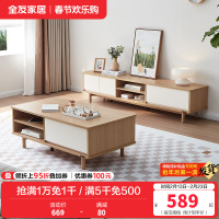 全友家居原木奶油风茶几电视柜客厅实木高脚茶几