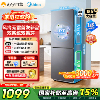 美的冰箱钛钢灰186升独立式双门家用小冰箱MR-196W一级能效节能省电120升冷藏66升冷冻电脑控温低音 以旧换新国补