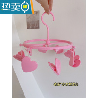 敬平晾衣架多夹子宿舍家用挂衣服内衣内裤多功能折叠收纳器晒袜子架 少女粉爱心*8夹衣架 1个衣夹