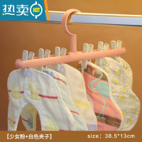 敬平宝宝专用晾衣架儿童多功能晒袜子器防滑家用加粗多夹子 少女粉+白色夹子衣架-WG-2415/1个 1个衣夹