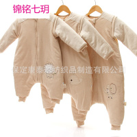 锦铭七玥彩棉睡袋 婴幼儿彩棉分腿爬服 睡衣 婴儿卡通连体衣秋冬加厚款