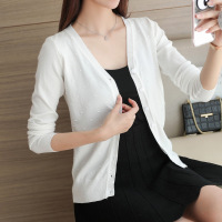 薇侣2017新品早秋女装韩版V领短款长袖针织开衫外搭外套毛衣女8616
