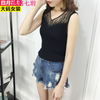 锦铭七玥加肥加大码女装V领无袖蕾丝背心 胖妹妹16早秋新款吊带打底衫