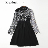 Kruidvat2017春夏新款时尚女装收腰水溶花撞黑色修身显瘦连衣裙图色