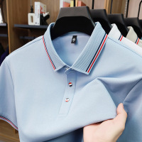 夏季新款男士纯色翻领简约时尚轻商务青年透气舒适轻薄桑蚕丝
