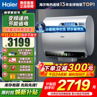 海尔(Haier)热水器小蓝瓶净水洗超薄扁桶家用电热水器3500W变频[3D MAX加热]小魔盒双胆BK7 60L