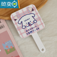 敬平少女心手持小号化妆镜学生宿舍便携随身携带小镜子梳子二合一套装 格子小狗便携式用镜