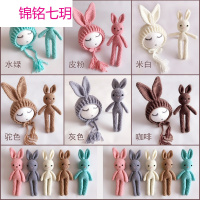 锦铭七玥跨境摄影服装 新生儿手工毛线小兔子玩偶长耳朵帽 婴儿毛线玩具