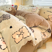 A类卡通牛奶绒床上四件套加厚保暖儿童珊瑚绒被套床单冬季三件套4