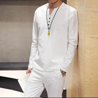 2017新款秋季男士长袖T恤中国风棉麻套装男装大码体恤上衣中式休闲两件套