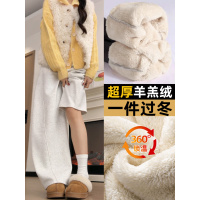 羊羔绒运动裤女秋冬季加厚加绒裤子胖mm大码棉裤外穿阔腿卫裤