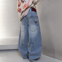 男童牛仔裤春秋款2026新款男孩春装大儿童装痞帅宽松休闲直筒裤子_869