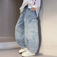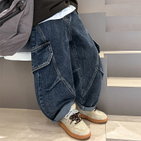儿童装男童牛仔裤子春秋款2026新款大童春季男孩春装阔腿工装长裤