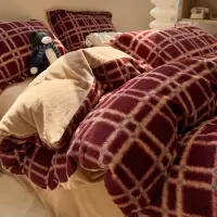 美拉德仿羊绒床上四件套双面加绒被罩床单新款床品床笠三件套