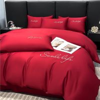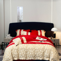 婚庆长绒棉贡缎100S床单四件套结婚红色被套床上用品