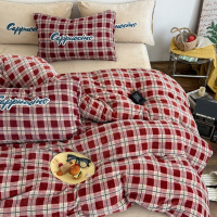简约法式赫本风格子蝴蝶结牛奶绒四件套冬天珊瑚绒四件套被套床单