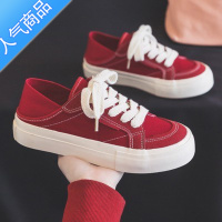 SUNTEK红色帆布板鞋女鞋2023新款春夏季百搭休闲单鞋增高厚底小白鞋女款