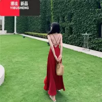 YIBUSHENG新疆川西旅游裙子新中式红色挂脖连衣裙女季高级感宽松度假长裙