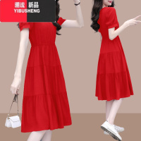 YIBUSHENG红色碎花连衣裙子女季2024新款桔梗法式气质绝美看收腰长裙
