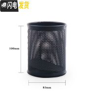三维工匠创意笔筒多功能大号黑色网状金属镂空名片收纳盒时尚办公用品桌面整理文具笔座男女生用简约笔桶 [2个装]圆形笔筒