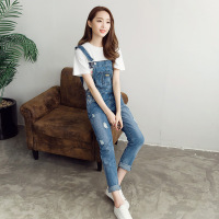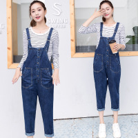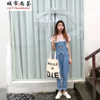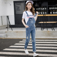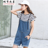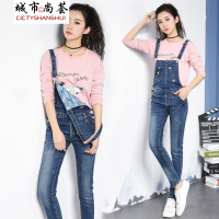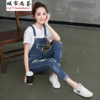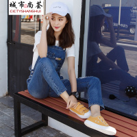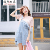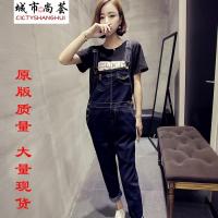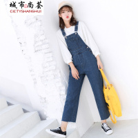 YIBUSHENG装微胖茶系穿搭配一整套今年流行漂亮牛仔背带连衣裙子女两件套