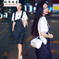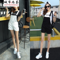 学院风黑白色牛仔背带短裤修身显瘦宽松大码吊带裤